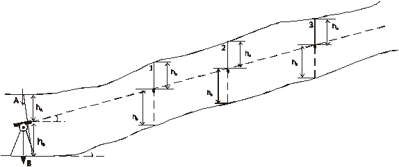 высоты hA, hB и ориентируют трубу теодолита в горизонтальной плоскости по оси