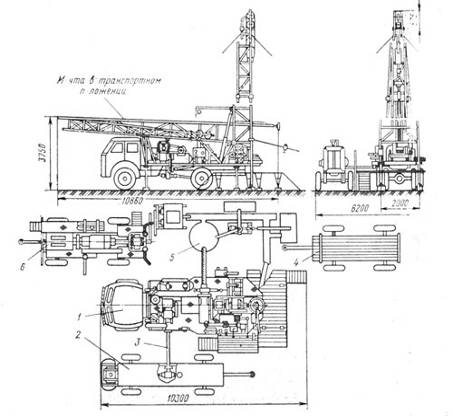 5 - глинохозяйство, 6 насосно-силовий причіп.