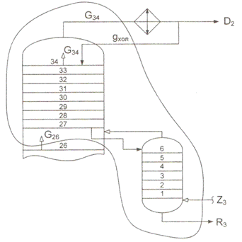Дизтопливо в стриппинг выводится с 17-й тарелки в количестве g17 = 7982 кг/ч.
