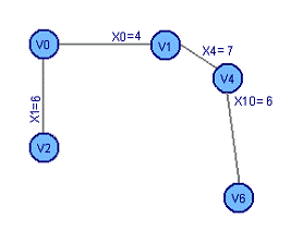 X0={V0, V1}, X1={V0, V2}, X2={V0, V3}, X3={V2, V4}, X4={V1, V4}, X5={V1, V2}, X6={V2, V3}, X7={V4, V5}, X8={V3, V5}, X9={V2, V5}, X10={V4, V6}, X11={V5, V6}