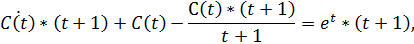 заменим постоянную С на функцию C(t) и решим неоднородное уравнение: