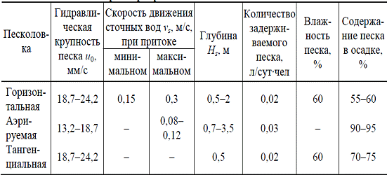 крупностью 18-24 м/с. Глубина песколовки конструктивно принимается равной половине