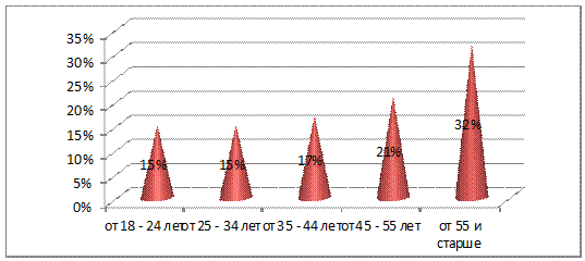 лет от 25 - 34 лет от 35 - 44 лет от 45 - 54 лет от 55 и старше