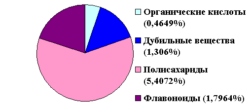 органических кислот (0,4649%), дубильных веществ (1,306%), полисахаридов
