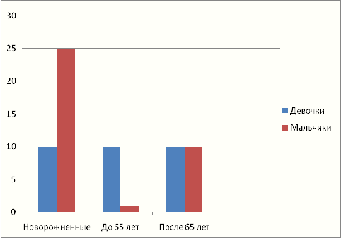 В остальных возрастных группах доминируют женщины - 10 : 1.