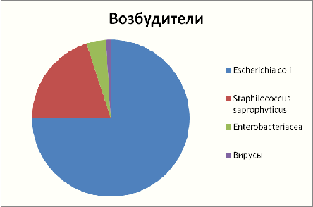 микроорганизм (75-95%), за ней следует Staphilococcus saprophyticus (5-20%),