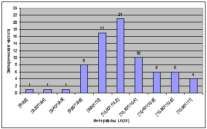 выборка имеет логарифмически нормальный закон распределения с параметрами m=-0,843,