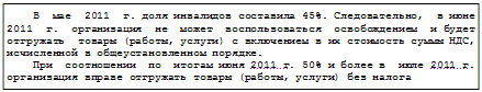 предоставление льготы в июле 2011 г., то расчет удельного веса производится по