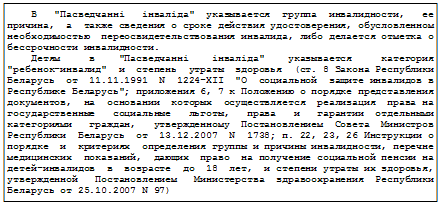 дающее право на льготы в соответствии со ст. 18 Закона Республики Беларусь от