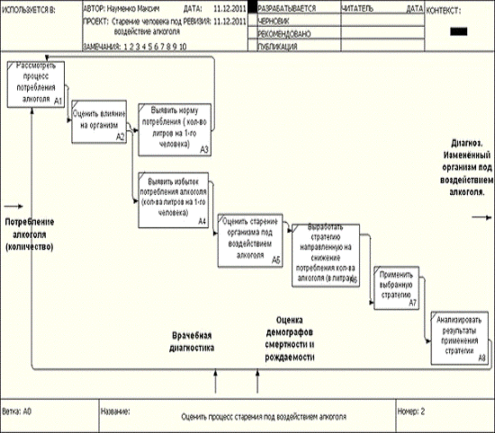 модель, отражающая старение организма под воздействием алкоголя. Были описаны