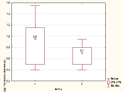 100х103/мл (1 -модифицированный метод; 2 - метод определения ферментативной