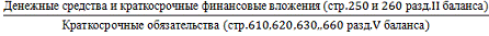 коэффициента промежуточной ликвидности (0,68 на конец 2009 г.) с высоким