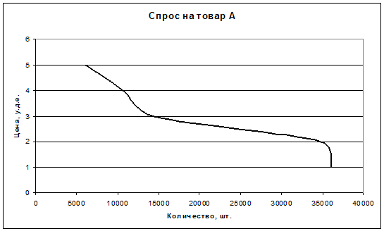 Найдите величины спроса на товар А при цене от 1 до 5 у. д. е. и