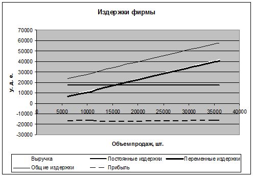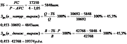 Фирма понесет убытки при снижении объемов продаж на 45,3% или на 4843 шт.