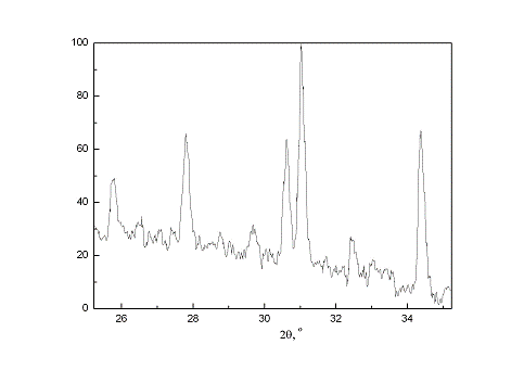 диффрактометра ДРОН 2.0 в медном излучении (U=30 kB, I=30 mA).