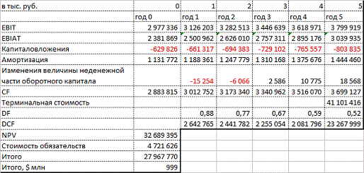 Стоимость, определяемая через «классический» NPV определяется по ставке WACC, учитывающей стоимость