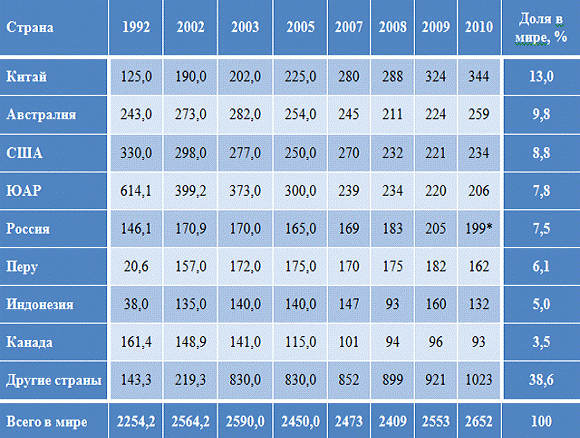 стран-продуцентов золота.
