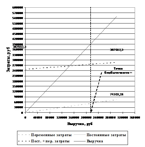 предприятие начинает получать прибыль. Точку безубыточности можно определить в