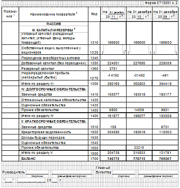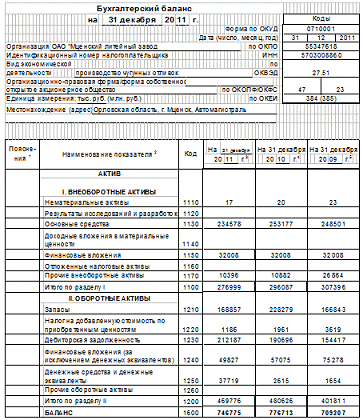 Бухгалтерские балансы за 2009-2011