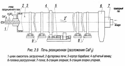 сернокислого разложения флюоритового концентрата в печи с наружным обогревом