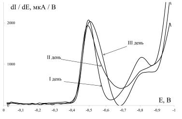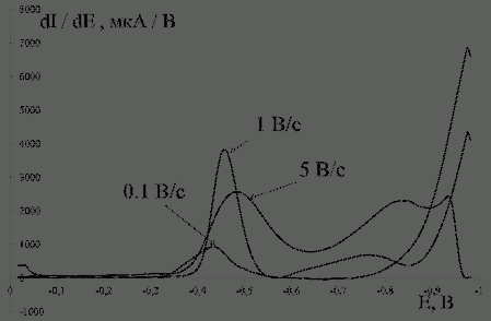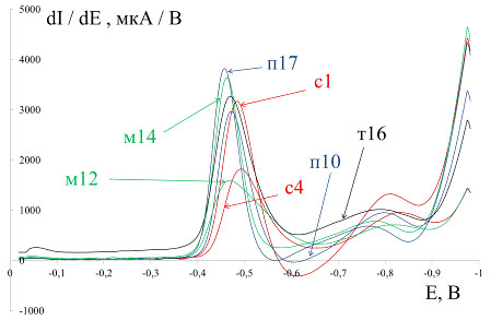 электровосстановления 10-3 М Pb+2 на фоне 0.01 М HCl на УПЭ, модифицированных смазочными маслами разных типов при скорости