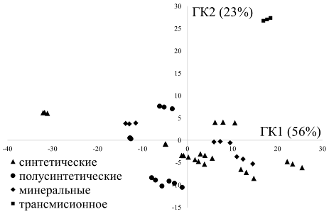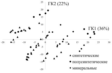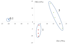 Рис. 4.1. График счетов ГК1-ГК2 МГК-моделирования вольтамперограмм