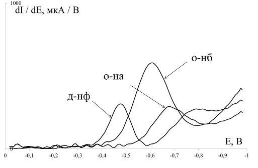 электровосстановления 10-4 М о-нитробензойной кислоты на фоне 0.01 М