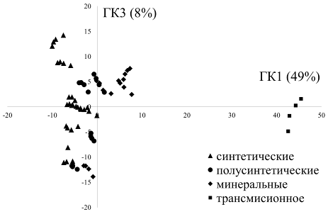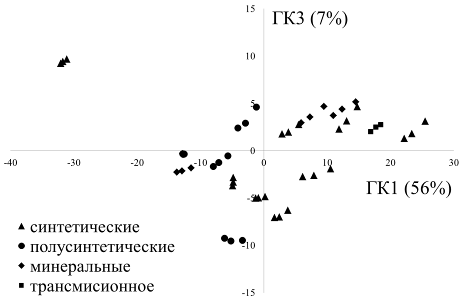 Идентификация моторных масел с использованием трехфакторных образов по природе