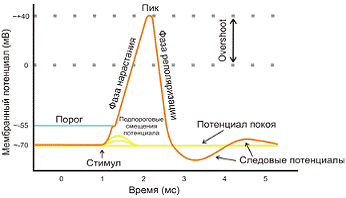 мышцы потенциал действия большинства нейронов. Тем не менее, в основе любого