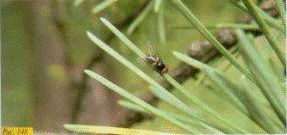 Лиственничная муха (Lasiomma laricicola) - маленькое насекомое черного цвета, длиной 4-5 мм, с