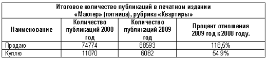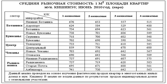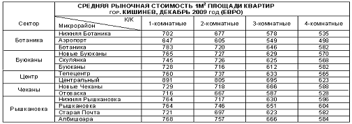 цен на жилье города Кишинэу за 2008-2009 гг.;
