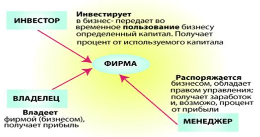 собственности): собственник бизнеса, менеджер (управляющий) и инвестор. При