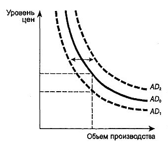 это увеличит номинальный объем совокупного спроса. Линия совокупного спроса AD