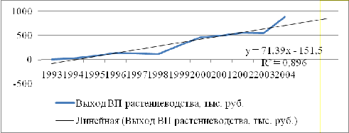 графика, выход валовой продукции растениеводства постепенно увеличивается. О