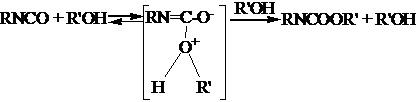 направлениям; 1-ое с образованием исходных продуктов изоцианата и спирта и