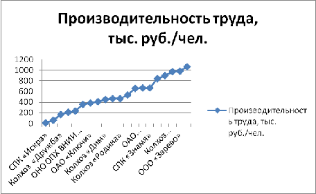 ряду имеют производительность труда от 13,4 до 222,68 тыс. руб./чел., со