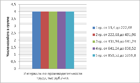 что в каждую группу вошло по 4 хозяйства. Согласно расчетам, полученным в