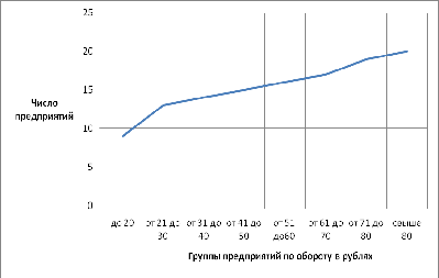 предприятий по обороту, в рублях.