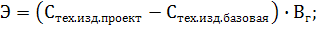 технологической себестоимости инновационного проекта и базового проекта, а так