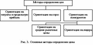 цены: на основе издержек производства, с ориентацией на спрос, на основе уровня
