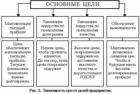 цели, которые предприятие собирается достичь с помощью установления цен на свою