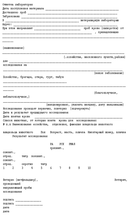 берут от животных в возрасте 6 месяцев и старше. В лабораторию в термосе со