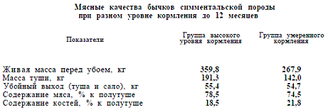 приведенных в таблице, видно, что группе бычков с умеренным кормлением для