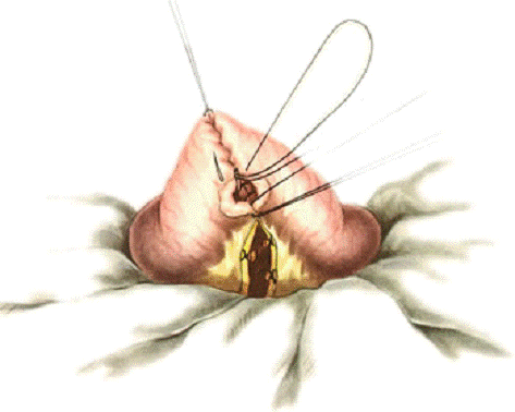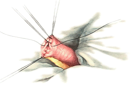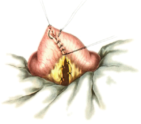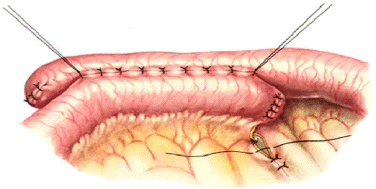 этаж по Шмидену. второй этаж по Ламберу. Вправляли кишечник в брюшную полость.