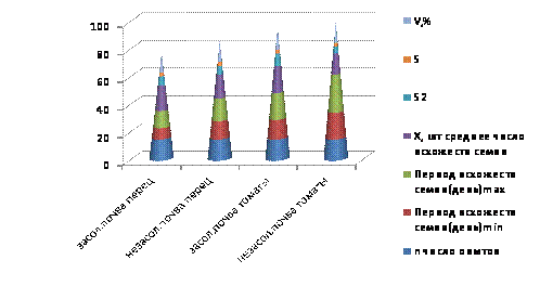 дней. На засолённой почве всхожесть семян в среднем равна 75%, а период всходов