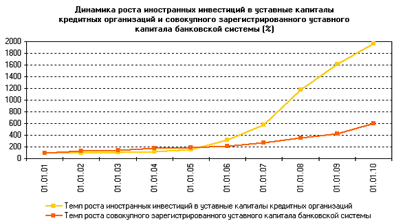 зарубежного капитала в банковском секторе достиг 30%, в 2000 г. он составлял