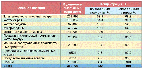 2 - Экспорт из России в 2010 г. по основным товарным позициям