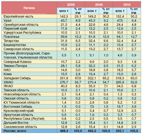 тонн, что на 2,4% превысило уровень 2009 г. (табл. 1). В России было добыто 505