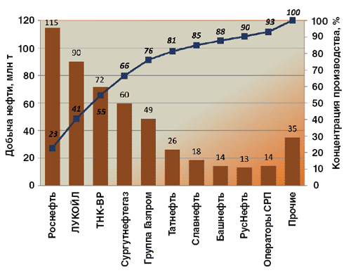 принадлежит аффилированным сервисным структурам пяти нефтяных компаний, еще 18%