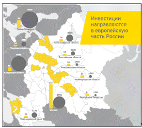 Направление инвестиций на территории РФ 2011 г.